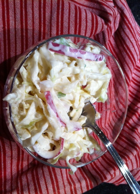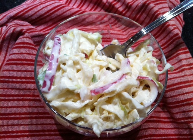 There is something about coleslaw. It seems every family has a special way of making their slaw. Regions have inspired types of coleslaw and generations have perfected the creation. I am always typing new coleslaw recipes. Everyone has their own way of doing it. This basic coleslaw was a hit with our family. I thought the greek yogurt changed the elements plus you didn’t have to add all that mayo. The complimentary touch was the cider vinegar. Serve this slaw up with your favorite barbecue. I promise no great-great grandmother will bat an eye at you trying something new! – Amanda