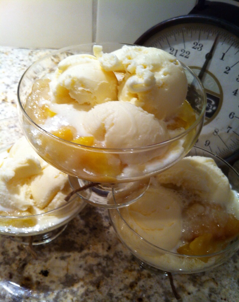 It just seems right to serve this peach cobbler with vanilla bean ice cream.